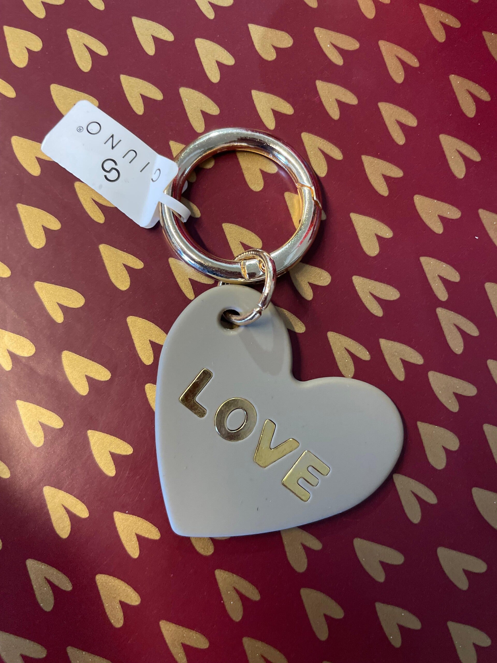 Deze schattige hartjes sleutelhanger hebben we in de kleuren taupe, beige en bordeaux.
