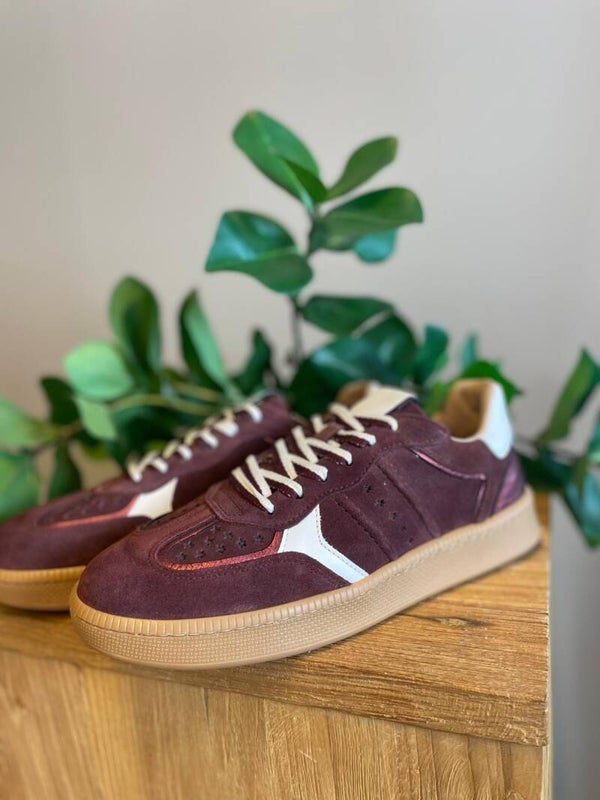 Maak je outfit compleet met de stijlvolle Mirabel sneakers in bordeaux met off-white details. Deze trendy sneakers zijn een echte must-have en combineren moeiteloos met zowel casual als sportieve looks. De buitenzijde is uitgevoerd in luxe suède, terwijl de binnenvoering van soepel leer zorgt voor optimaal draagcomfort.