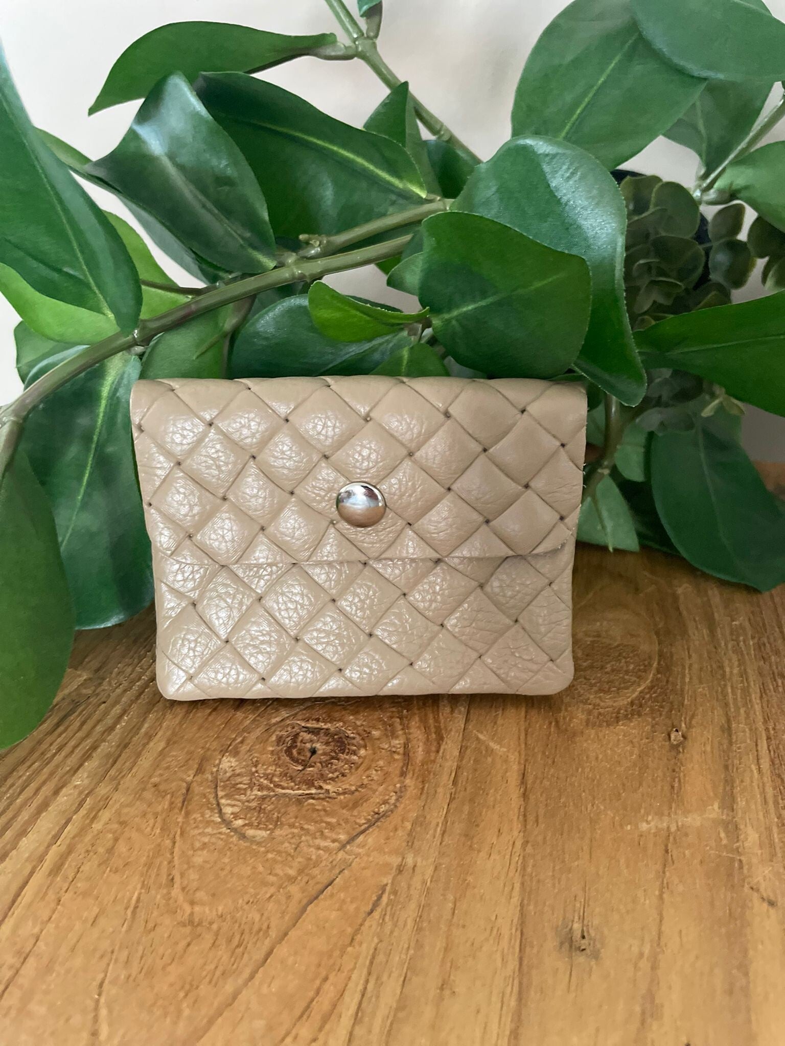 geruite beige portemonnee