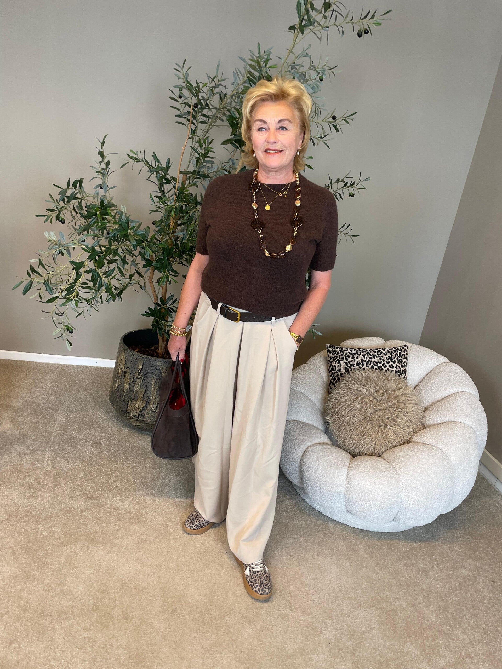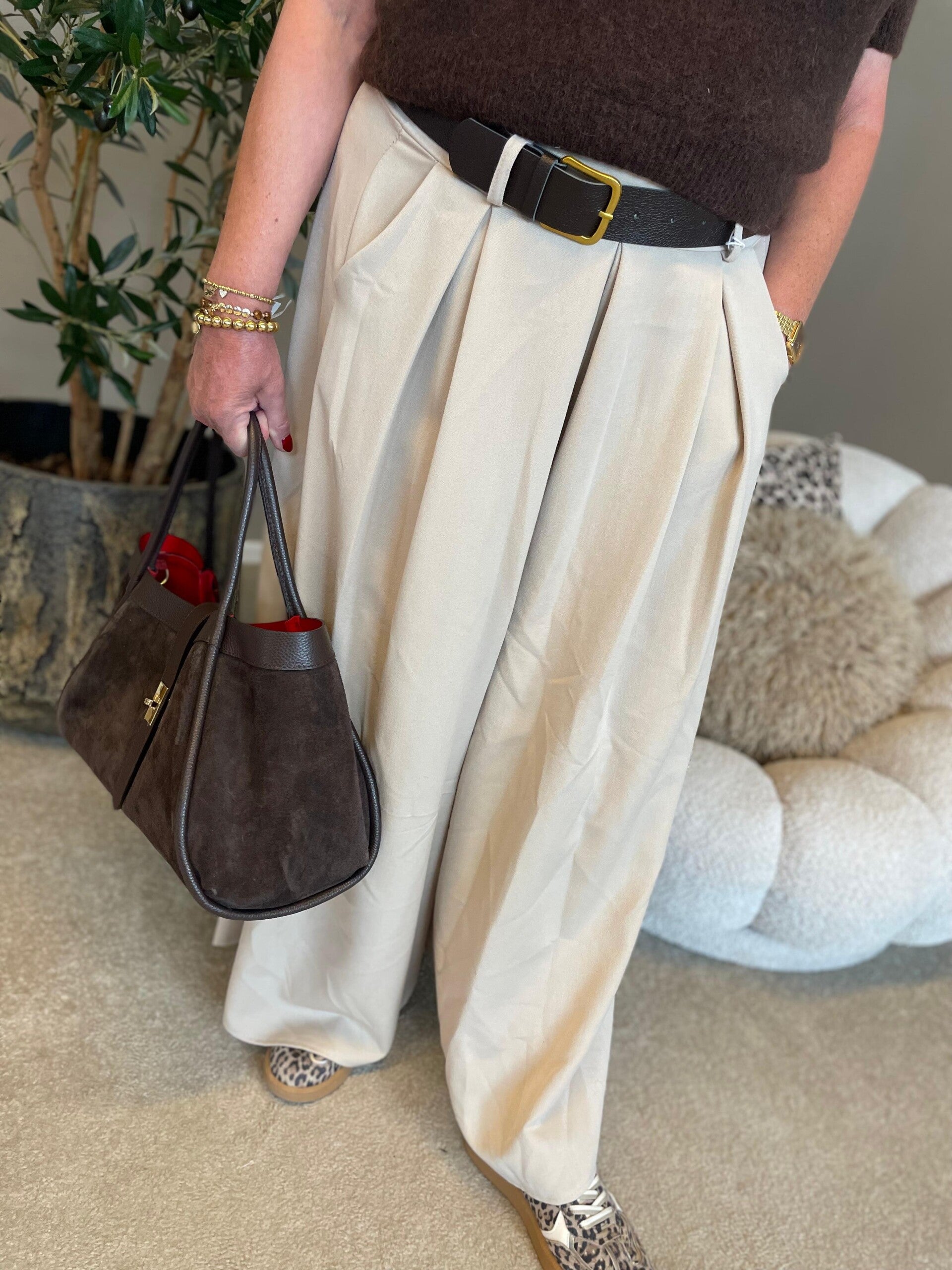 Wijde pantalon beige