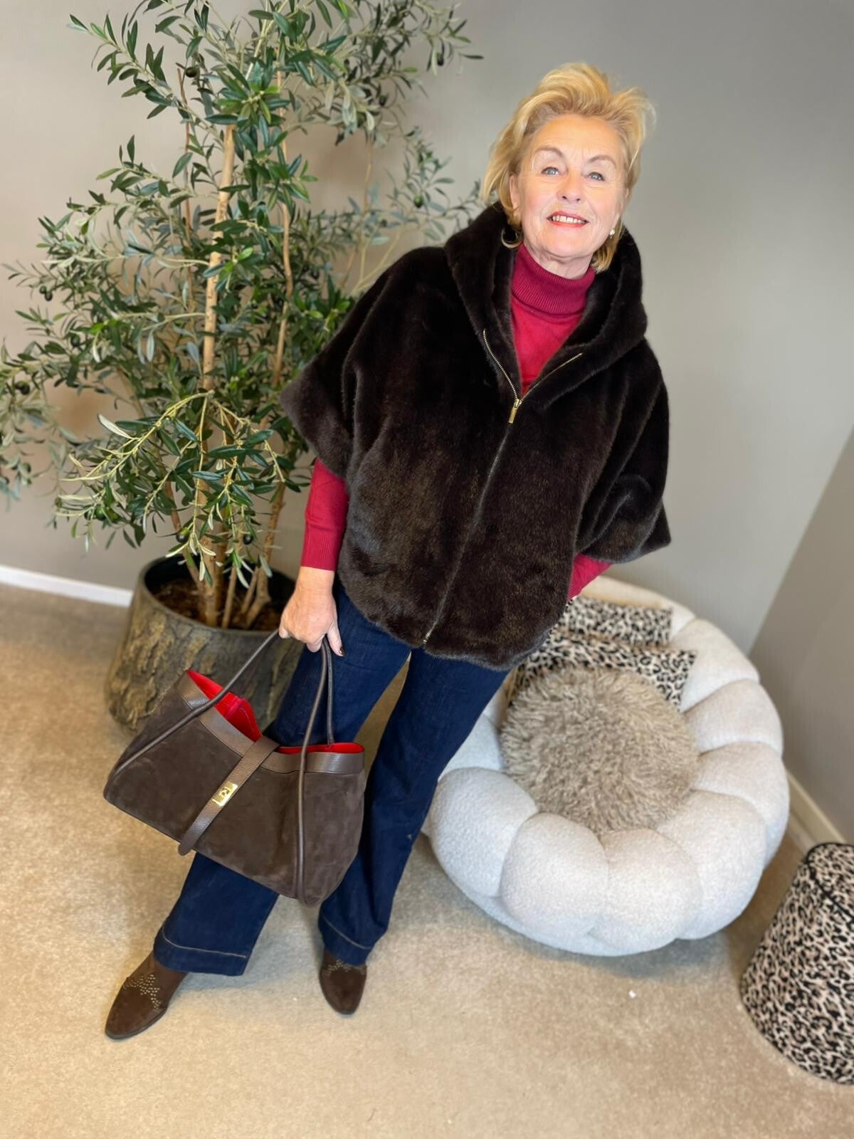 Bontjasje Mila met capuchon donkerbruin